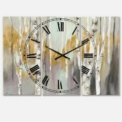 Hot Sale 🔥 The Gray Barn Jartop ‘Silver And Yellow Birch Forest II’ 3-panel Oversized Metal Clock – 36 In. Wide X 28 In. High – 3 Panels 🔥