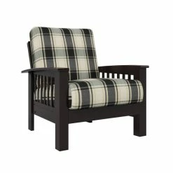 Promo 👏 The Gray Barn Mercy Brown/ Black Plaid Mission-style Arm Chair With Exposed Wood Frame ⭐