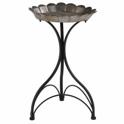New 🛒 The Gray Barn Wild Cherry Small Tri-Pod Curved Metal Accent With Petal Galvanized Top Tray 💯