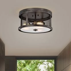 Best deal 🥰 The Gray Barn Magnet Hill Faded Grey 3-light Patterned Metal Drum Shade Flush Mount – Silvery Gray 🔥