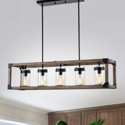 Cheap ❤️ The Gray Barn Farmhouse 8-Light Kitchen Island Rustic Wood Pendant Lights – 29.5″X 11.875″X 23.25″ 💯