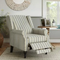 Flash Sale 🔥 The Gray Barn Hale Rustic Woven Striped Linen Wingback Push-back Recliner Denim Blue Stripe 💯