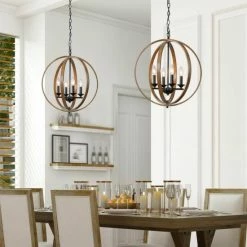 Flash Sale 😀 The Gray Barn Farmhouse 4-Light Globe Wood Grain Candle Chandelier 🧨