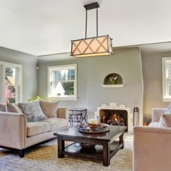Outlet 🎉 The Gray Barn Flying Turtle 3-light Wood Kitchen Island Rectangular Burlap Chandelier Pendant – 25″x 8.25″x H10″ ✨