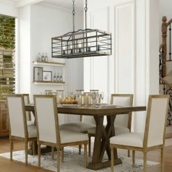 Wholesale 🤩 The Gray Barn 5-Light Light Wood Black Chandelier Linear Rectangle Island Light For Dining Room – L26″ X W10.2″ X H19.7″ ⌛