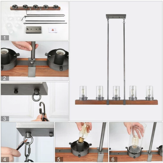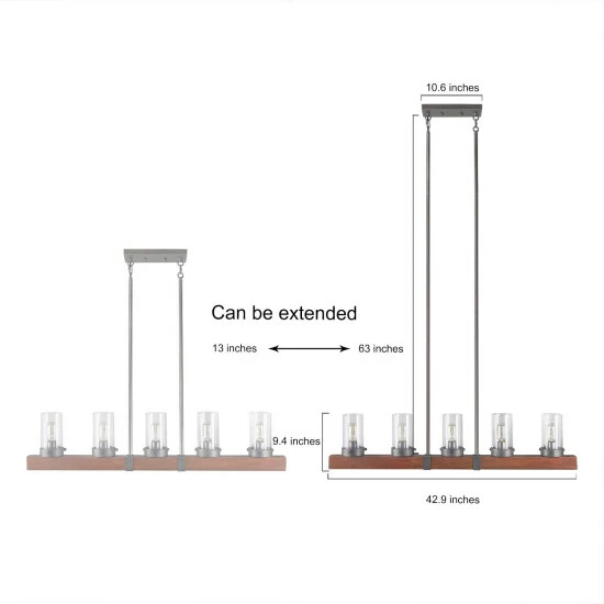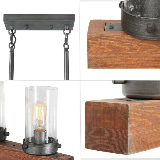 Update a plain kitchen into a rustic farmhouse space with this charming linear chandelier. This alluring addition brings abundant style and lovely illumination to your home. A natural wooden frame and seed glass inspired by natural elements make for an eye-catching way to add some texture and life.