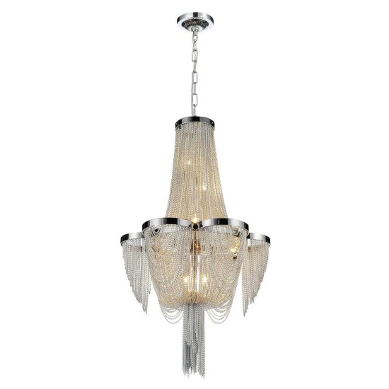 Dripping with decadence and gushing with glamour, this pendant is a scintillating addition to home decor. Silver rope chains dangle from the fixture for boundless dazzle sure to enrich and enliven decor with unforgettable luxury.
