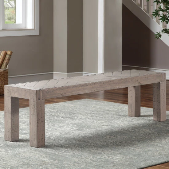 The natural character and years of natural weathering allow the Aubree dining bench to be a great addition for today’s home. This backless bench, made of heavily distressed solid reclaimed FSC Pine lumber, is the perfect accent for your home or dining set. Β The neutral weathered grey finish blends well with today’s color trends and would add a beautiful seating option to your kitchen or dining room or even your rustic style bedroom. Β Your purchase includes one (1) dining bench. Β Β