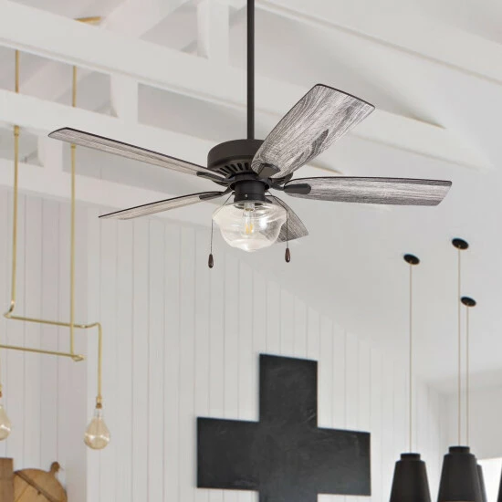 Rife with rustic charm and optimal functionality, this fan is sure to enrich your decor while providing perfect temperature year round. The depth of the finish brings out a farmhouse allure, and the calm neutrals of the blades are highly complimentary to anything coastal.