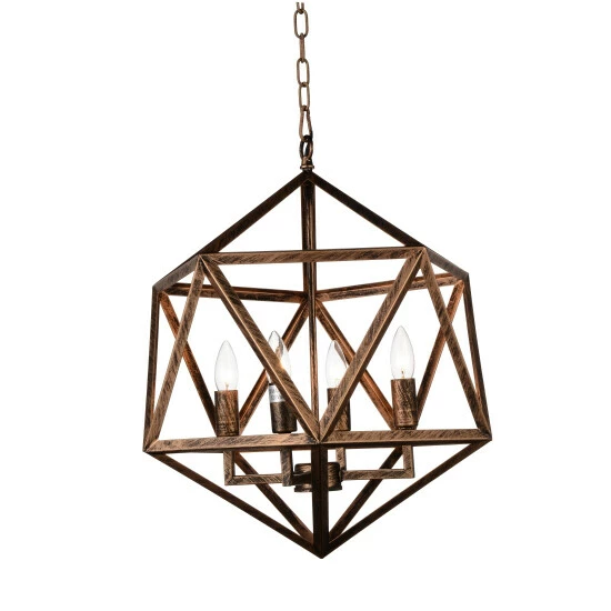 Display light and life in your room with the antique forged copper finish on this three-light chandelier. The lattice structure makes a symmetrical, geometric, cage-like pattern using triangles, while 6 feet of chain lets you adjust the height of this design.