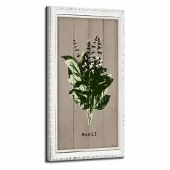 Decorate your kitchen or green room with a little warmth and whimsy with this basil painting. The rustic look of the canvas is perfect for a welcoming environment.