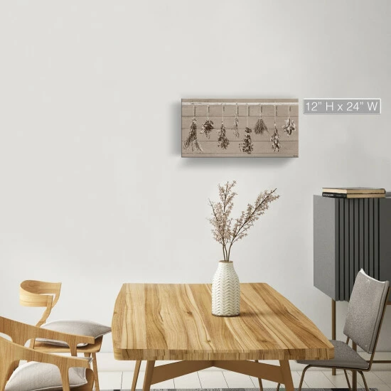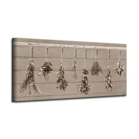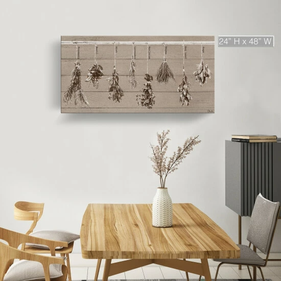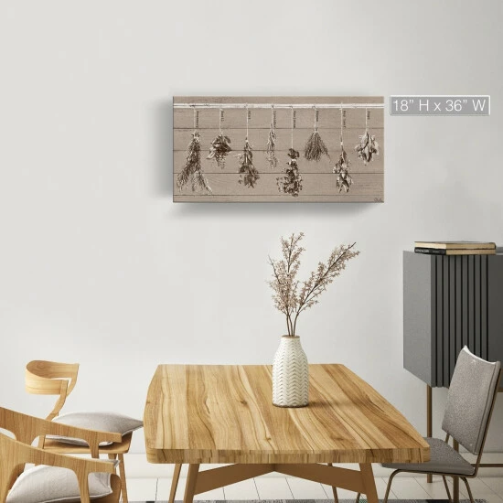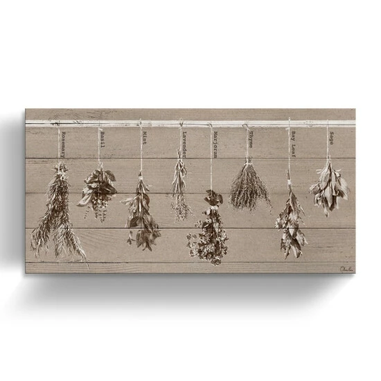 Refresh your kitchen or green room with a little warmth and whimsy with this herbs painting. The rustic look of the canvas is perfect for a welcoming environment.
