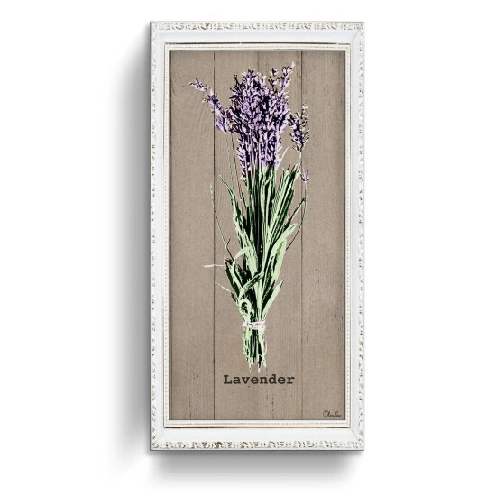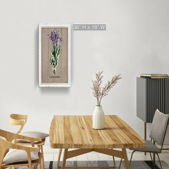 Enliven your kitchen or green room with a little warmth and whimsy with this lavender painting. The rustic look of the canvas is perfect for a welcoming environment.