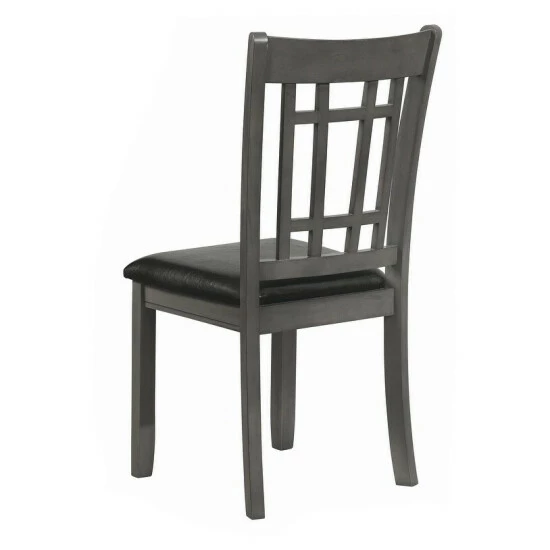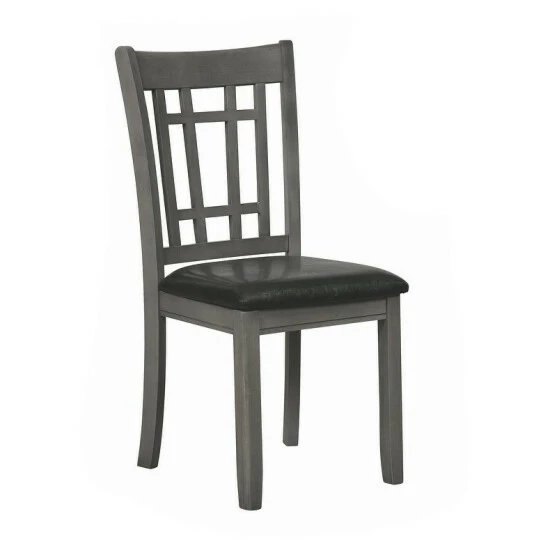 Versatile country refinement is the hallmark of these upholstered dining chairs. A combination of vertical and horizontal slats creates a window pane effect for a touch of uniqueness sure to be a delightful finishing touch to dining room decor.