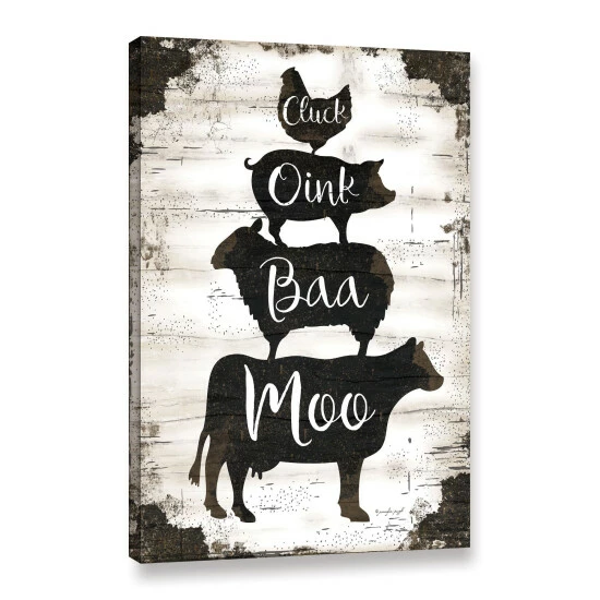 Lend a touch of whimsy and warmth to your space with this gallery wrapped ‘Farmhouse Stack’ art. The sweet little barnyard creatures have the sounds they make written on their silhouettes for a charming farmhouse feel perfect for any homestead.
