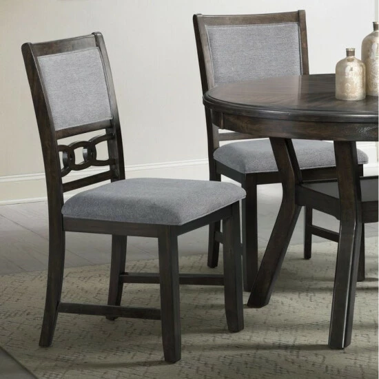 Offer a touch of contemporary grace to your dining area with this set of fabulous chairs. The lovely design is highlighted with a chain link detail on the back for eye-catching texture, and the upholstered seat and back ensures a cozy and welcoming seat.