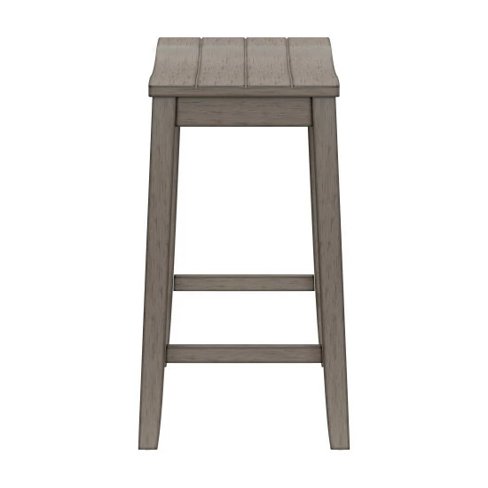 Coastal charm with a farmhouse flair embodies the Gray Barn Chatterly Wood Backless Counter Height Stool. Our versatile backless saddle stool has a wide wood ship lap saddle seat, perfectly curved for added comfort and easily fits under kitchen islands or counter height spaces. The aged gray finish creates a stylish focal point for your dining space and is an easy addition to any decor. Durable wood flared legs add extra support and are complimented by perfectly a placed footrest adding an extra layer of comfort while eating, entertaining or working. Assembly is required.