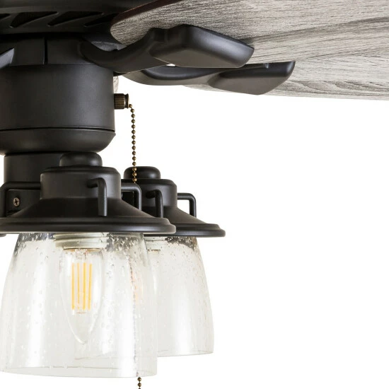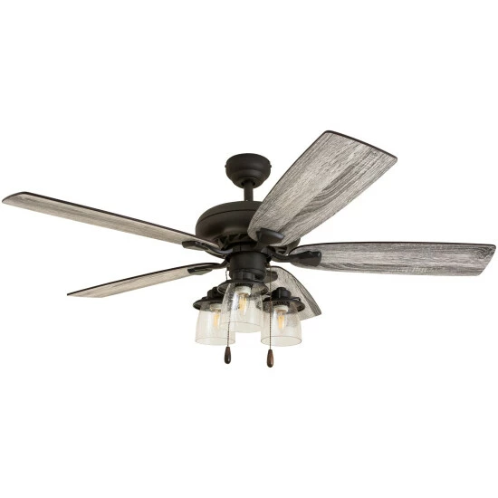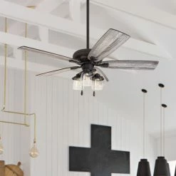Serene, sophisticated, and rustic, this charming fan is sure to elevate your decor as it provides the perfect temperature for your home. The depth of the finish brings out a farmhouse allure, and the calm neutrals of the blades are highly complimentary to anything coastal.
