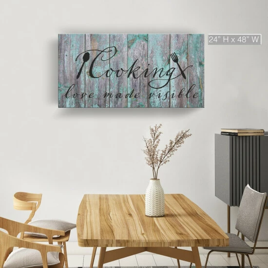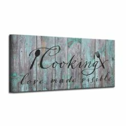 Bring a little warmth and whimsy to your kitchen or dining room with this charming ‘cooking’ canvas. The rustic look of the canvas is perfect for a welcoming environment.