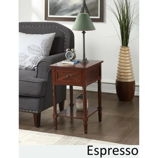 Bring the style and functionality of The Gray Barn Cranesbill Country End Table with Charging Station, home today! Featuring a concealed built-in charging station for easy accessibility. The charging station includes two standard outlets and two USB ports which can easily charge your phone, tablet and even your laptop. The cable management hole allows you to store multiple devices on the tabletop without the damaging or tangling of cords. The power supply cord is 6 feet in length giving you the room you need to display your end table where you choose. Features a drawer for additional concealed storage and includes a bottom shelf great for books or displays.
