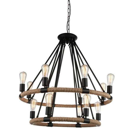 Bring a modishly nautical vibe to your space with this handsome chandelier. Two circular tiers have a rope finish that contrasts nicely with the fixture’s black trim, and 14 upturned lights ensure brilliant lighting overhead.