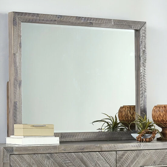 Showcasing a herringbone design for rustic flair and straight lines for contemporary grace, this mirror is an alluring addition to decor. Striking details and wonderful balance are the hallmarks of this mirror.