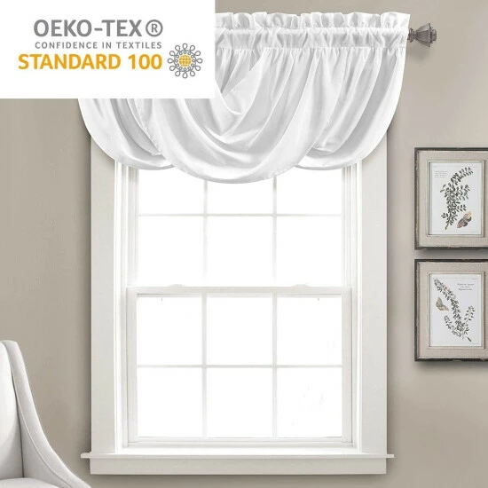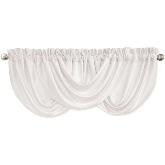 Offer an element of grace and texture to any space in your home with this lovely window valance. Handcrafted of a silky brushed poly fabric, this luxurious valance drapes elegantly from curtain rods with the sewn-in 3-inch rod pocket. Pair this stunning valance with a matching set of drapery panels or use alone to let natural light brighten your room.