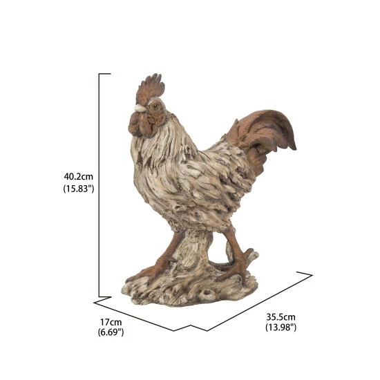 This unique standing rooster statue will definitely turn heads with its driftwood composition. It can be used both indoors and out. Finely detailed craftsmanship.
