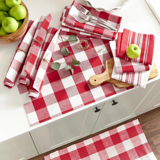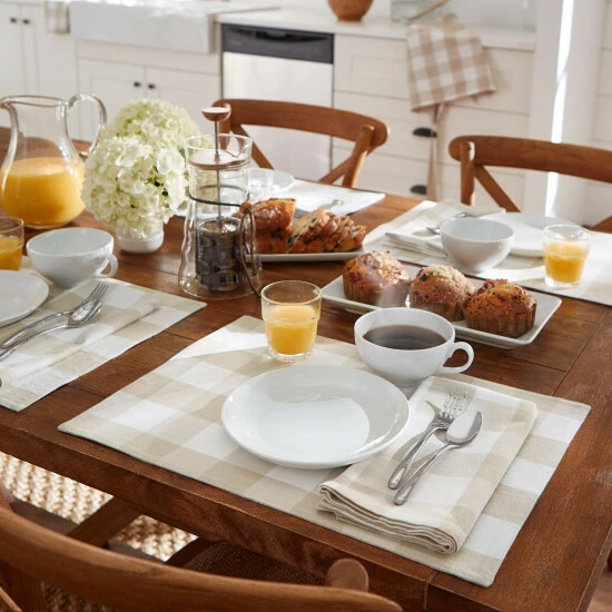 Complete the look of your dining area with these stylish placemats. The four placemats are crafted from machine washable cotton and feature a buffalo check pattern, available in a variety of attractive colors to add the perfect touch of modern country style to your decor. Delicately hemmed edges prevent wear and tear, and add a a finished look to these rustic placemats.