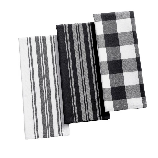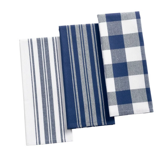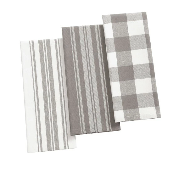 Stylish, rustic and beautiful the Emily Gulch Collection offers everything you need to create the shabby chic, modern country home. These fashionable assorted kitchen towels are made from premium quality cotton and feature three complementing patterns in a variety of colors to create the best Farm house look. Patterns include check and stripes. Excellent for special occasions, events, parties, and everyday decor use. Soft cotton can be easily ironed to release stubborn creases and make your kitchen towels wrinkle free. Delicately hemmed edge adds a finished look and prevents wear and tear. Sold as a set of 3 towels. Coordinate to all the items in our Emily Gulch collection including tablecloths, placemats, pot holders, napkins, kitchen mats and window treatments. 100% cotton. Easy care, machine washable.