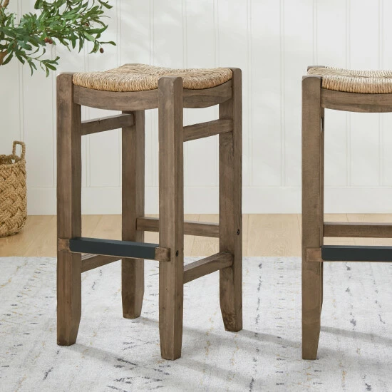- A natural seagrass, rush seat with light amber wood creates a modern mix