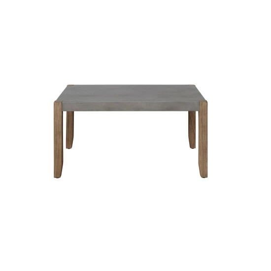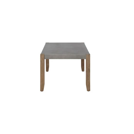 - Faux concrete gray top with light amber wood create a modern mix