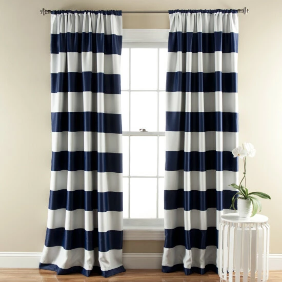 Invite bold pattern into your decor with these horizontally striped curtains. Measuring over six feet long, each curtain is made from 100-percent polyester that helps to darken your room from the sun all day long.