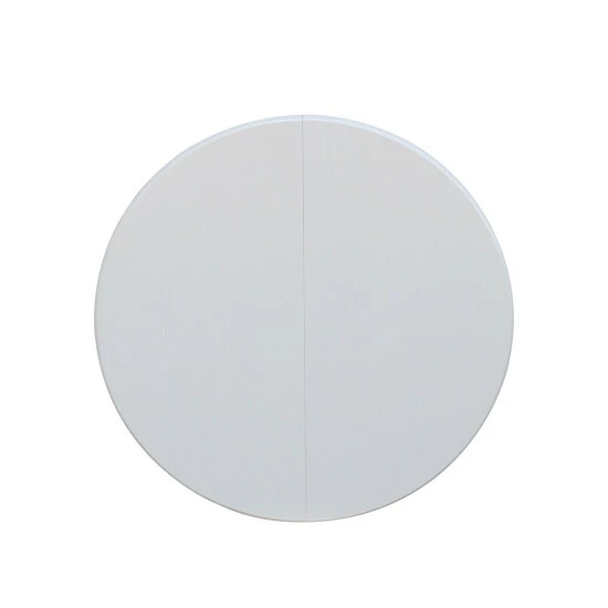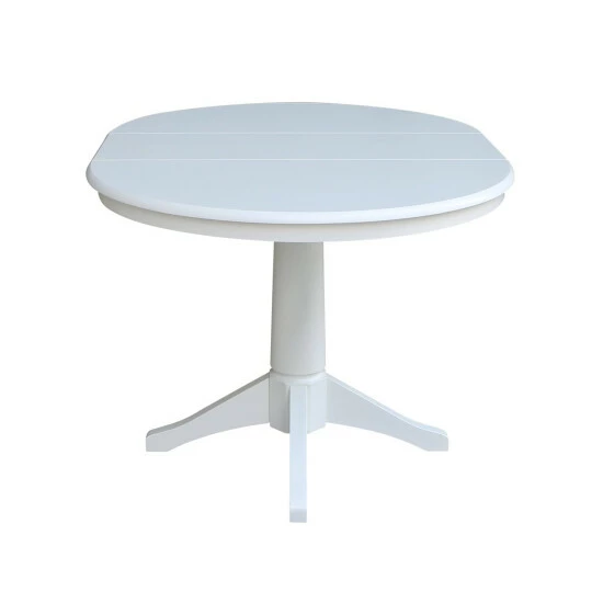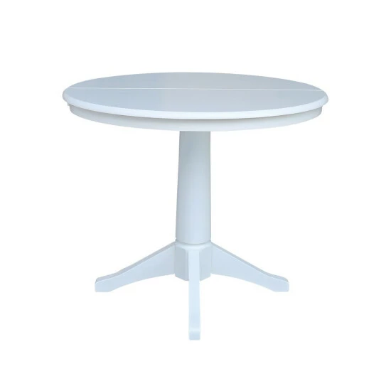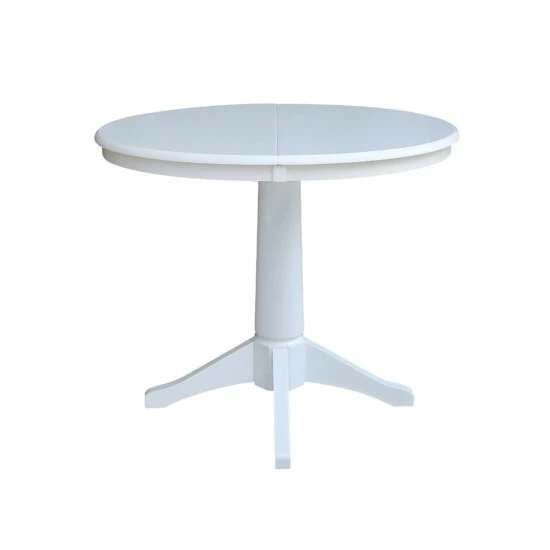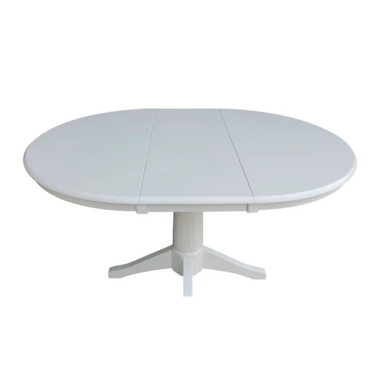Furnish your breakfast nook or small dining room with this four-person dining table. The round design allows for a smooth traffic flow around the table, and four feet on the pedestal base keep this table steady without the legs getting in the way of chairs. A leaf extension adds extra dining space when needed.
