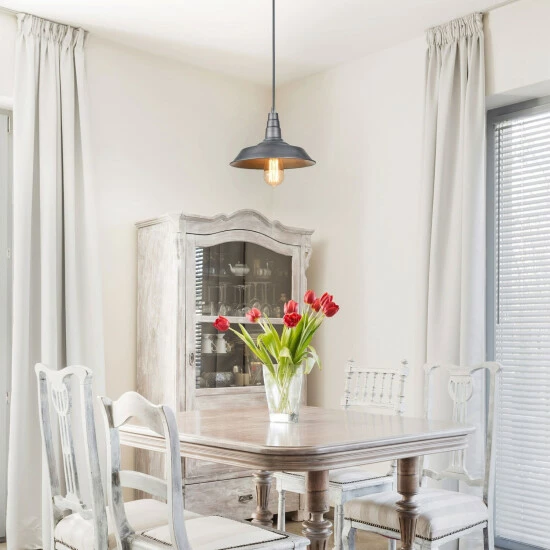 The warehouse pendant is designed with an aged look that will enrich your home. Pair this piece with a vintage filament bulb(not included) for a custom and vintage look in minutes. Hand-painted in black, this functional and stylish ceiling light will provide plenty of bright and even illumination in living rooms, garages, dens and wherever your imagination leads you. Come with a whole piece, no need to assemble.
