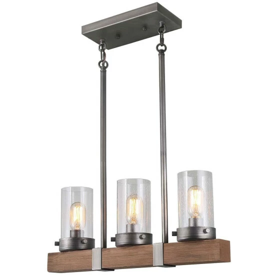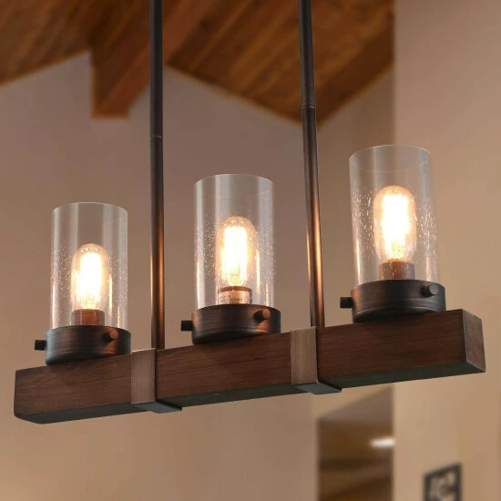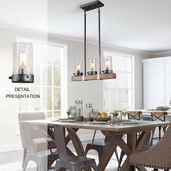 Handmade Wooden Island Lighting – Inspired by natural element, we add natural solid wood and seed glass into this farmhouse chandelier.Β