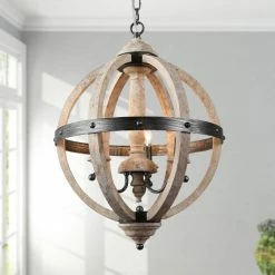 Bold, graceful old world expression and chic dimension make this chandelier is a refreshing addition to home decor that you are sure to treasure. The rustic finish and iron and wood construction ensure a timeless and striking focal point that elevates any space in an instant.