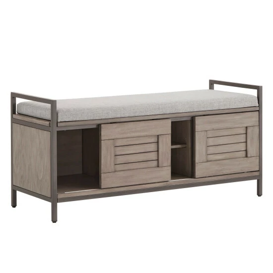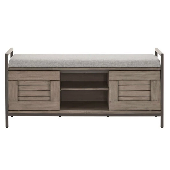 Keep your stuff organized in your hallway with this grey storage bench from iNSPIRE Q Classic. Featuring a metal base for sturdiness and a linen upholstered seat for comfort, this bench provides a bottom cabinet with adjustable shelves for storing your items neatly. Crafted from high-grade MDF, this bench lasts for a long time.