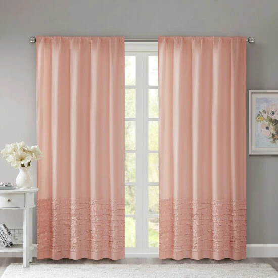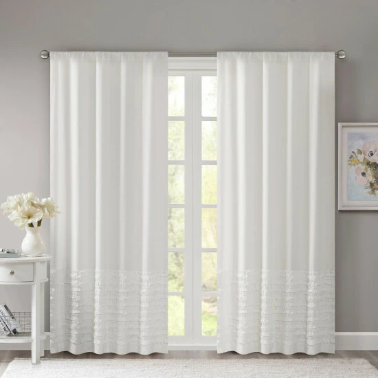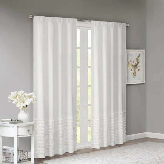 Give your home a charming ambiance with this elegant curtain panel. Featuring a ruffled trim across the top, the panel is available in white, pink, blue, or grey to enhance any decor with a romantic flair. The soft cotton fabric is machine washable for easy cleaning, and the rod pocket ensures quick installation.