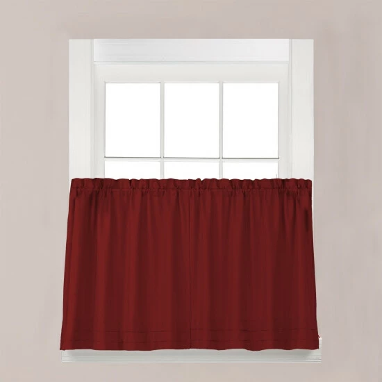 Accent your windows with a splash of vibrant color when you install this curtain tier pair in your home. This set creates privacy while letting light into the room, and the tiers are equipped with a pocket that makes rod-hanging a snap. The soft and silky 100-percent microfiber weave is machine-washable for easy care.