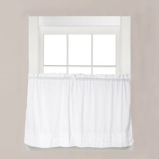 Create extra privacy with this Flinders Forge tier curtain, which covers the lower half of a window. Crafted with polyester microfiber and finished with a pleated hem, this tier drapes in soft folds. The white color adds a fresh feeling to your kitchen or bathroom. Mount the curtain with any rod up to 1.5 inches in diameter.