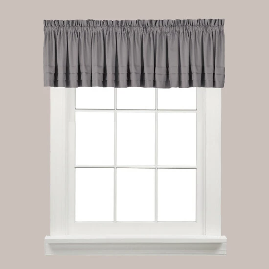 This valance is 100-percent polyester microfiber with a pleated hem to attain a soft and clean look. Complete this style with a tier pair. Machine washable for easy care, this curtain fits up to 1.5′ rod.