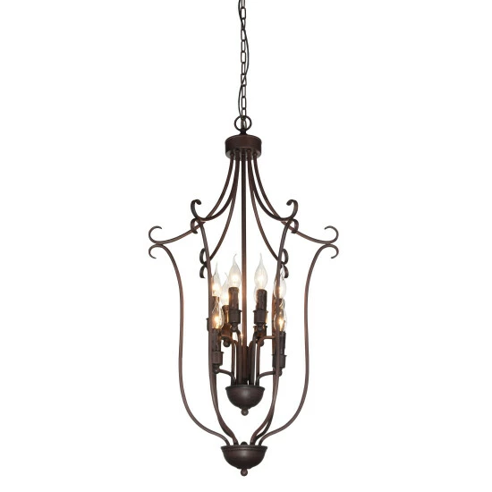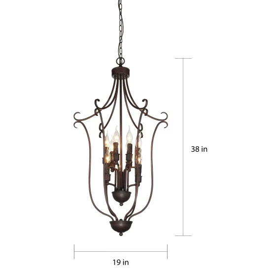 Dimensions: H 38′ x W 19′ x D 19′ – Rubbed Brown Finish – Requires 9 E12 Bulbs Max 60 W (Sold Separately) – Comes with 72 ‘ of chain – One year warranty against manufacturers defect.