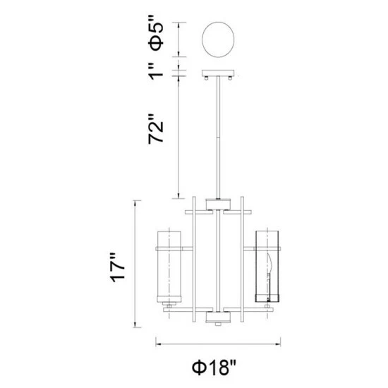 - Dimensions: H 17′ x W 18′ x D 18′ – Black Finish – Requires 6 E12 Bulbs Max 60 W (Sold Separately) – Comes with 72′ of rod – One year warranty against manufacturers defect.