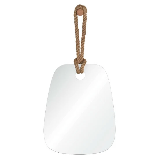Bring a quaint little country touch to your home with this fun and fabulous mirror. Suspended from a wooden peg by twisted hemp rope, the eclectic design of this wall mirror is the perfect combination of fun and functional. The curved, freeform shape and small scale of the mirror lends itself to unique placement throughout the home.