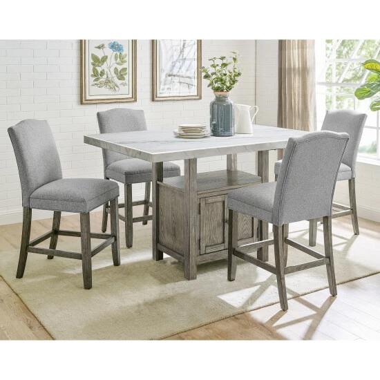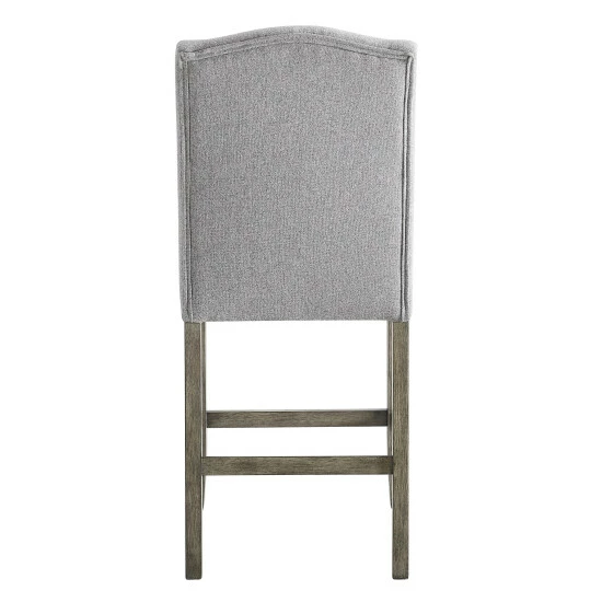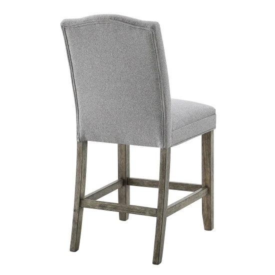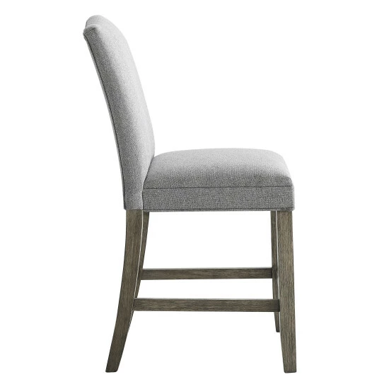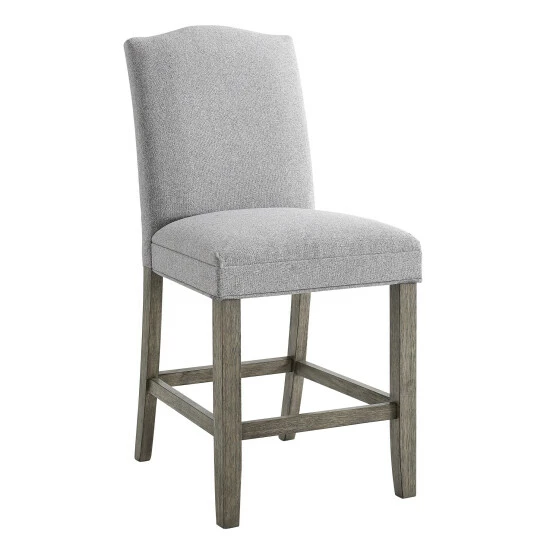 Rustic casual seating for your dining room or bar, this counter stool is upholstered in ash grey polyester with a driftwood finish. Four-sided stretchers add stability and make a comfortable footrest.