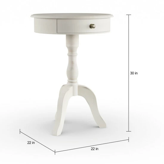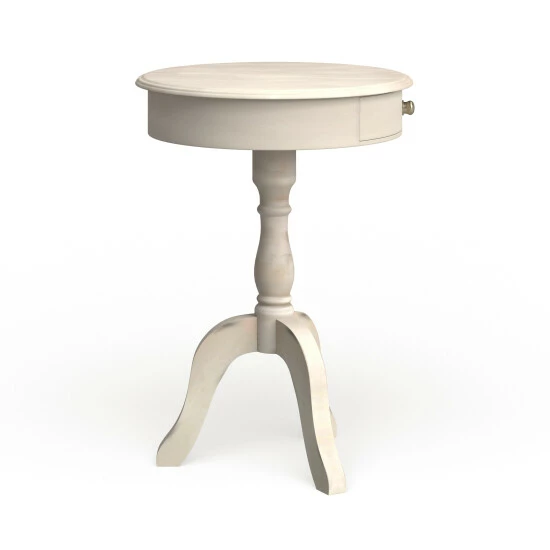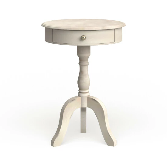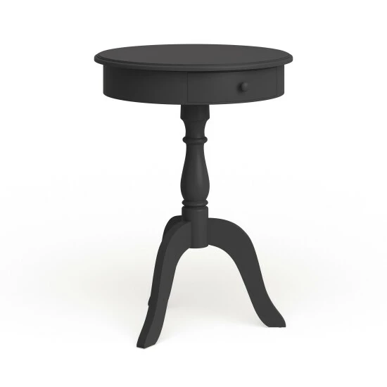 Complete any decor with this elegant pedestal table. Featuring traditional curves, the table offers a hint of timeless sophistication for any space. The table is available in a black, grey, or antique white finish to complement your home with warmth and grace. The drawer offers a convenient spot for small accessories and items.