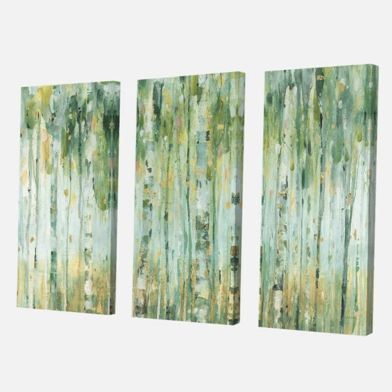 This alluring triptych infuses some life and loveliness into your home. Verdant trees are brushes in abstract lines over the three panels, offering a bright and beautiful piece you are sure to adore.