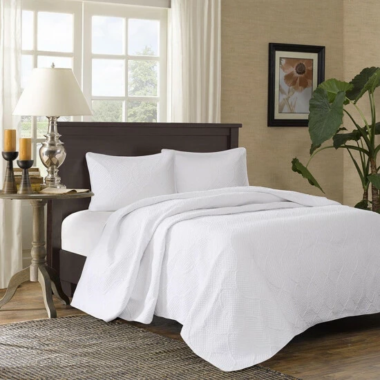 Imbue your decor with the calming elegance of this lovely bedspread set. The crisp white color complements any space, while the lovely quilted fabric offers a cozy texture. The soft fabric and fill ensure a comfy night’s sleep, and the entire set is machine washable for easy cleaning.