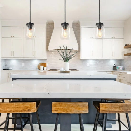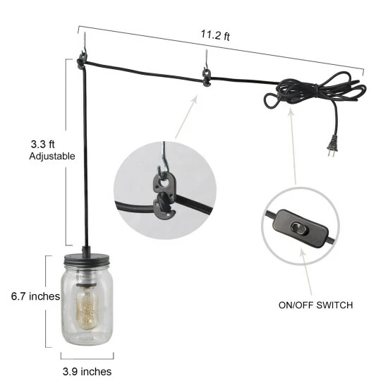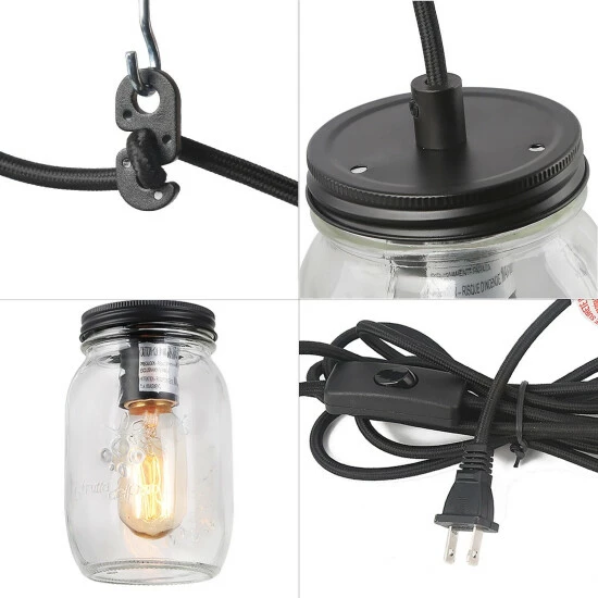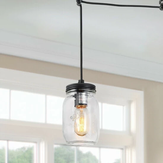 The classic mason jar shape creates this pendant, more importantly, the light grants you an industrial style to your indoor spaces. The plug-in power cable makes it much easier for exhibition than a hardwired cable.